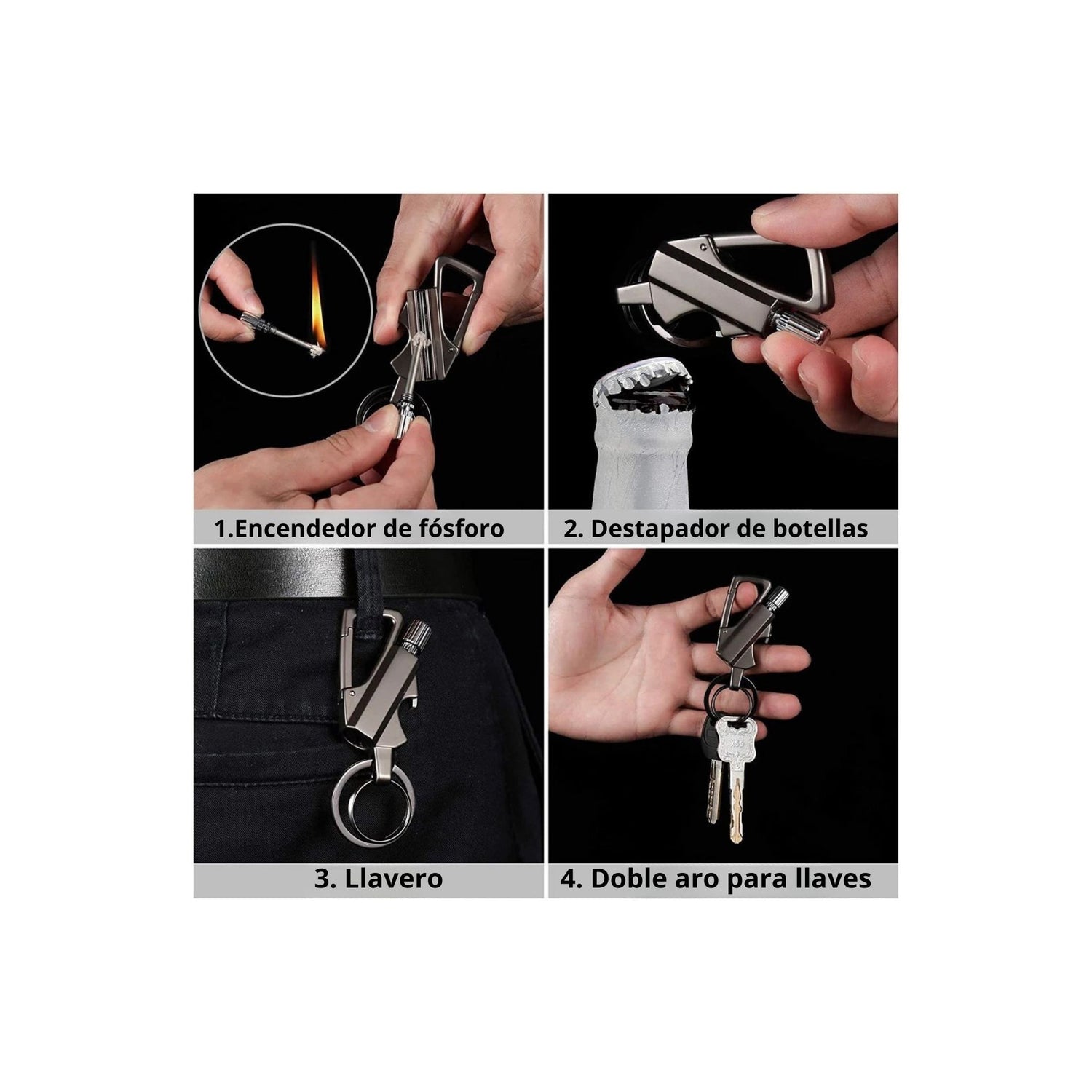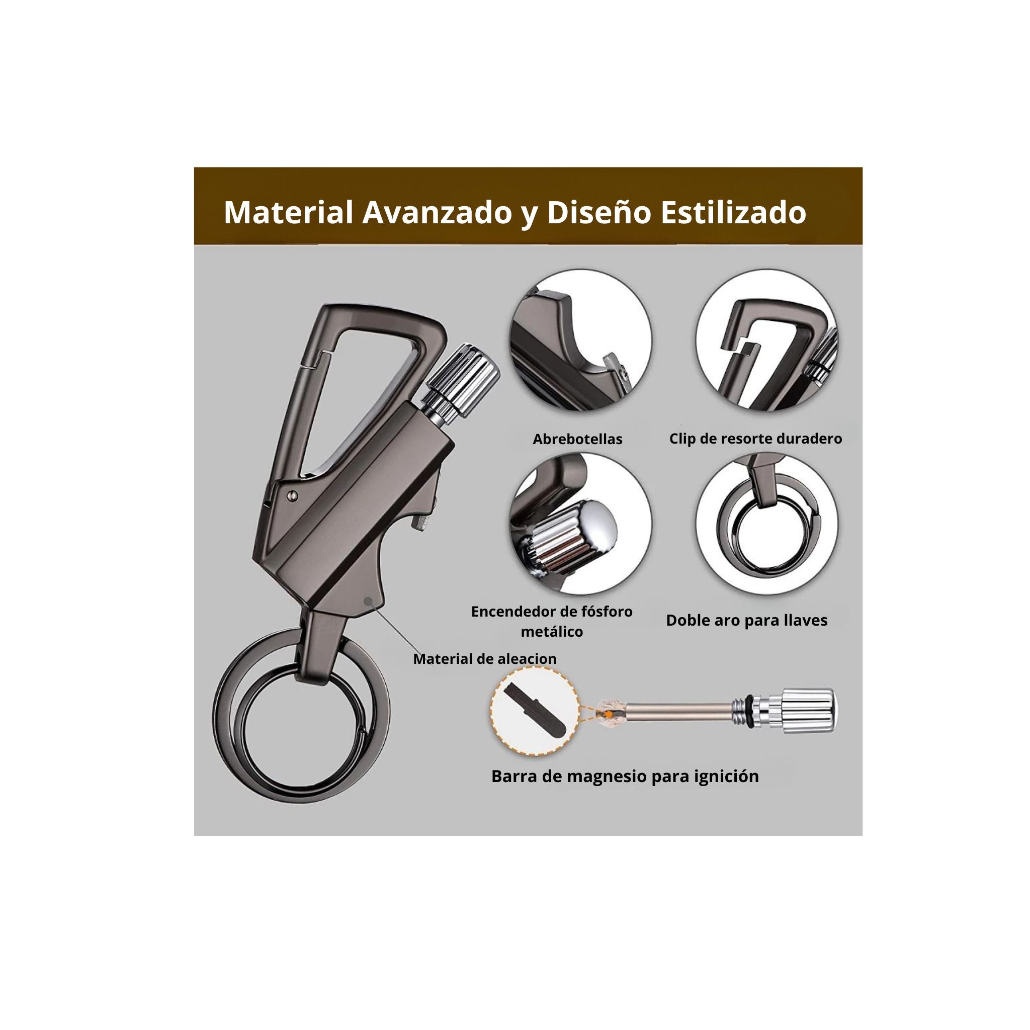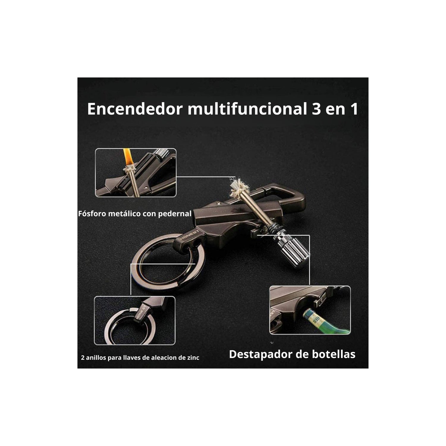 Un diseño elegante, útil y sorprendente que combina encendedor, llavero y abrebotellas. Compacto, resistente y listo para cualquier ocasión, se convierte en tu accesorio imprescindible diario.