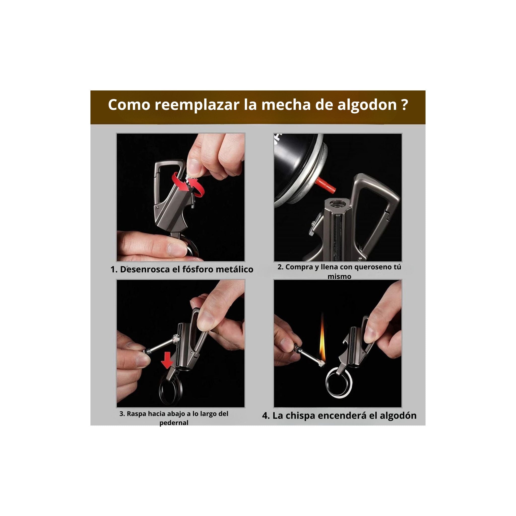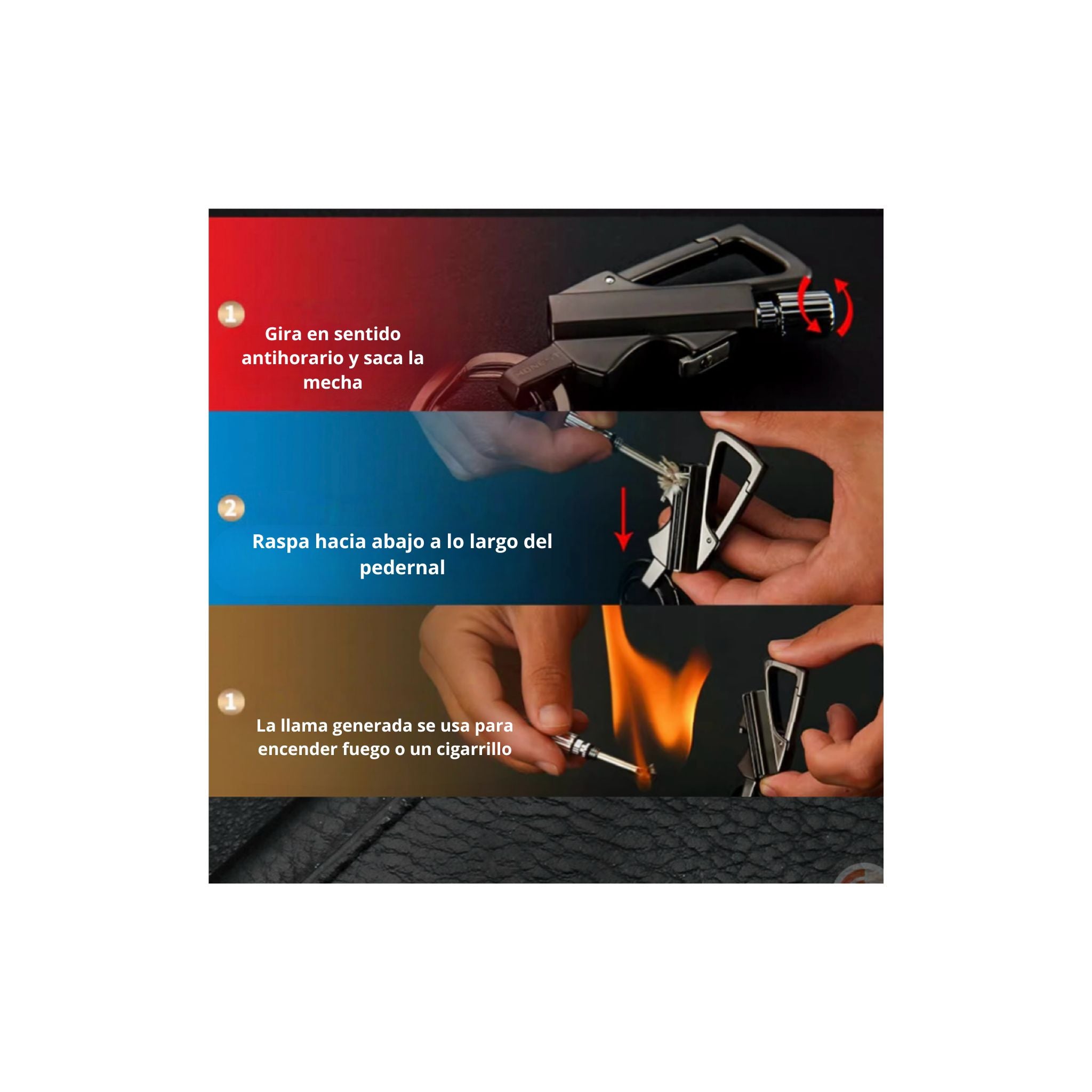 cinturón. - Encendedor tipo fósforo metálico — Mecha metálica que genera llama.