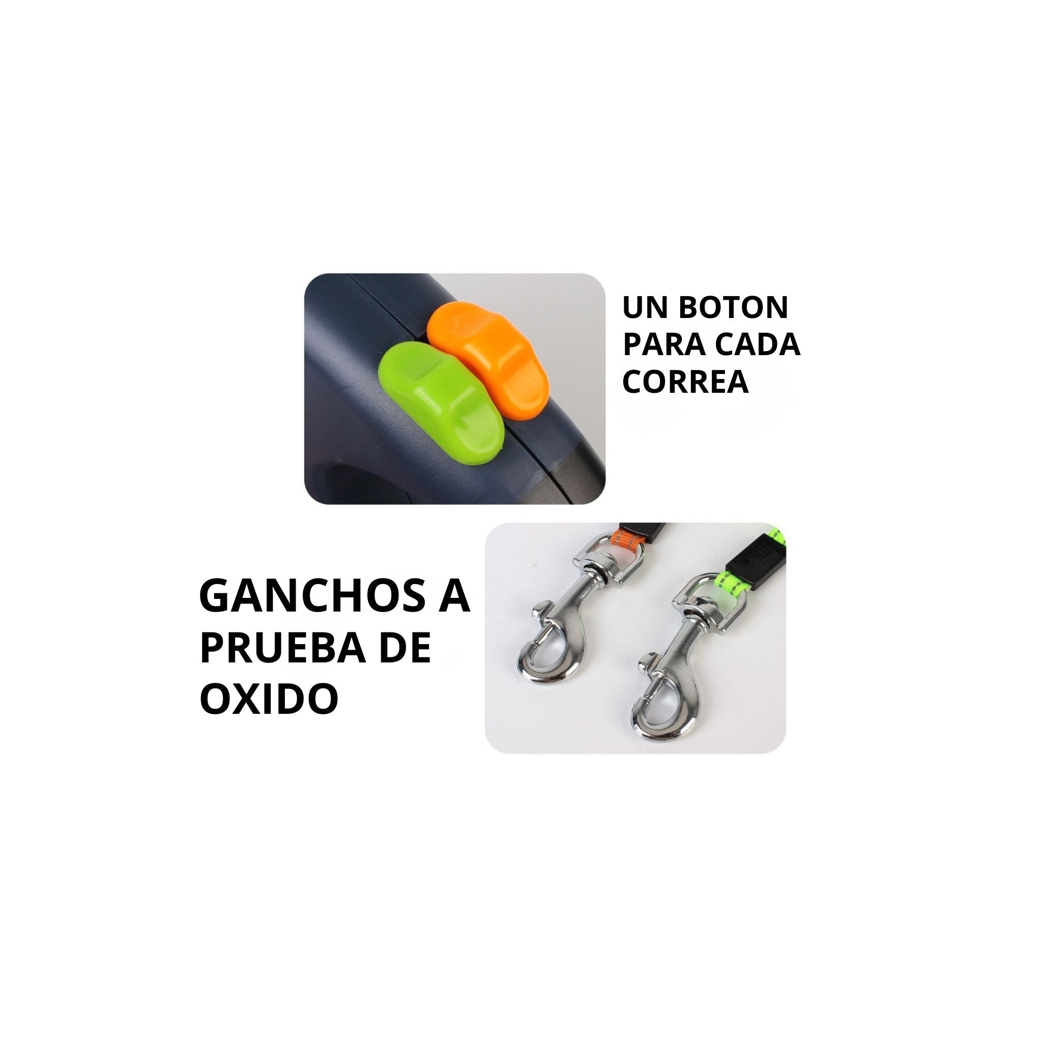La correa dual ofrece control independiente y longitud ajustable para razas pequeñas, medianas o grandes. Un solo producto para distintas necesidades; simplifica tus paseos.